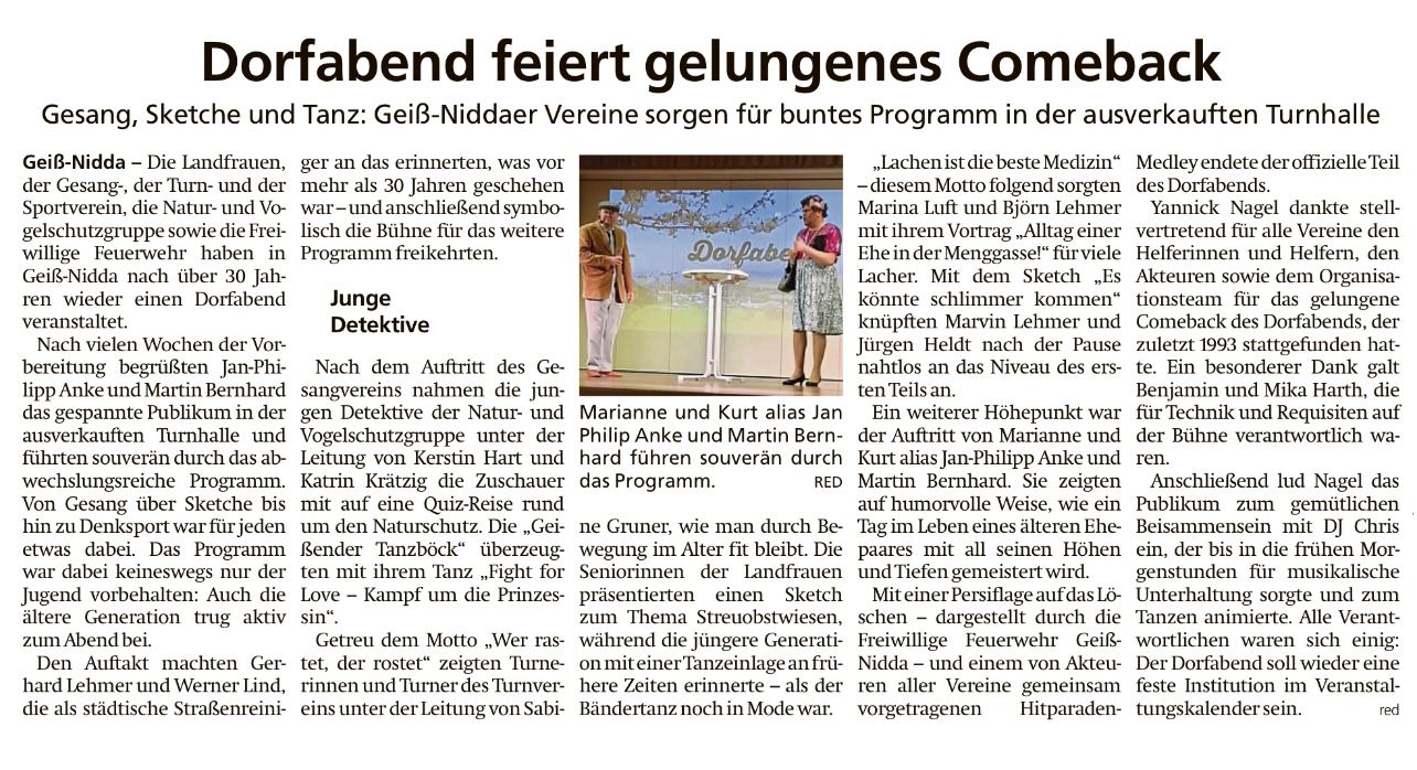Also: Runter vom Sofa - Probe ist jeden Donnerstag ab 20 Uhr in der Turnhalle von Geiß-Nidda, kleiner Saal !